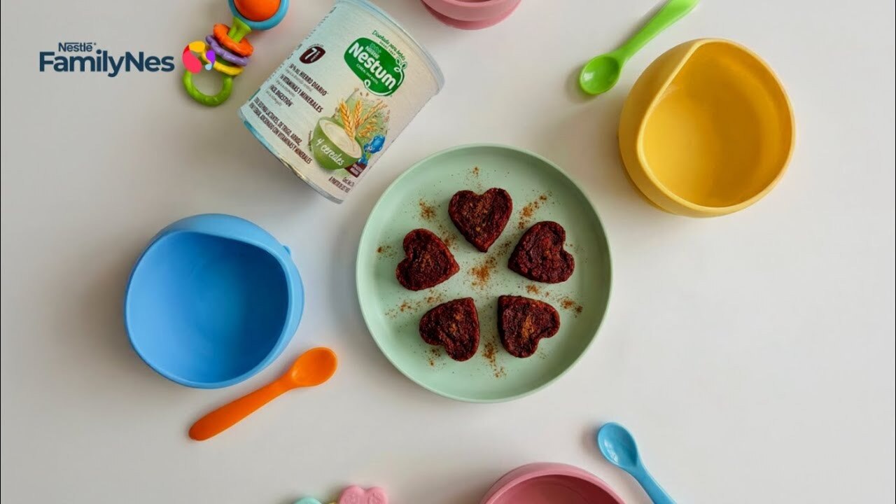 - En un procesador de alimentos o licuadora, mezcla el cereal Nestum® 4 cereales, el betabel, los dátiles, el aceite, la canela y la vainilla.