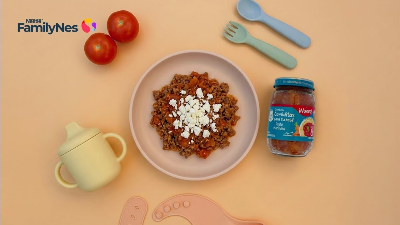 - Incorpora el frasco de papilla Gerber® de pasta marinara y hierve durante 1 minuto más.